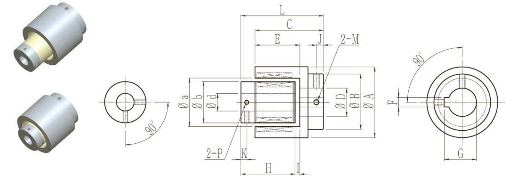 | 型號(hào) | ΦA | ΦB | C | ΦD | Φa | Φb | Φd | E | F | G | H | I | J | K | L | M | P | 扭矩N.m |