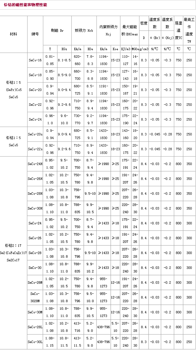 產(chǎn)品材料:釤鈷